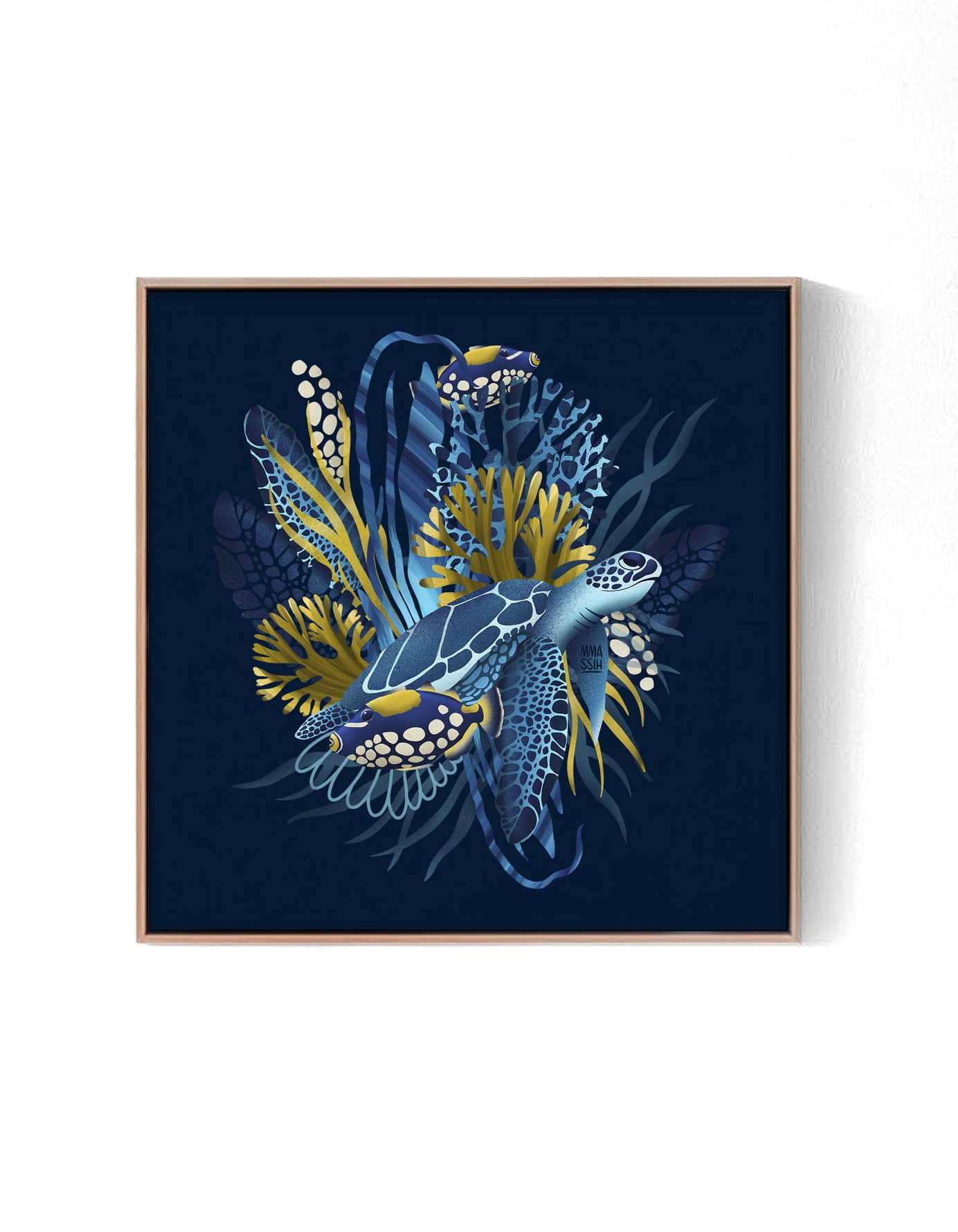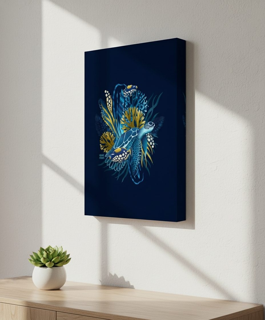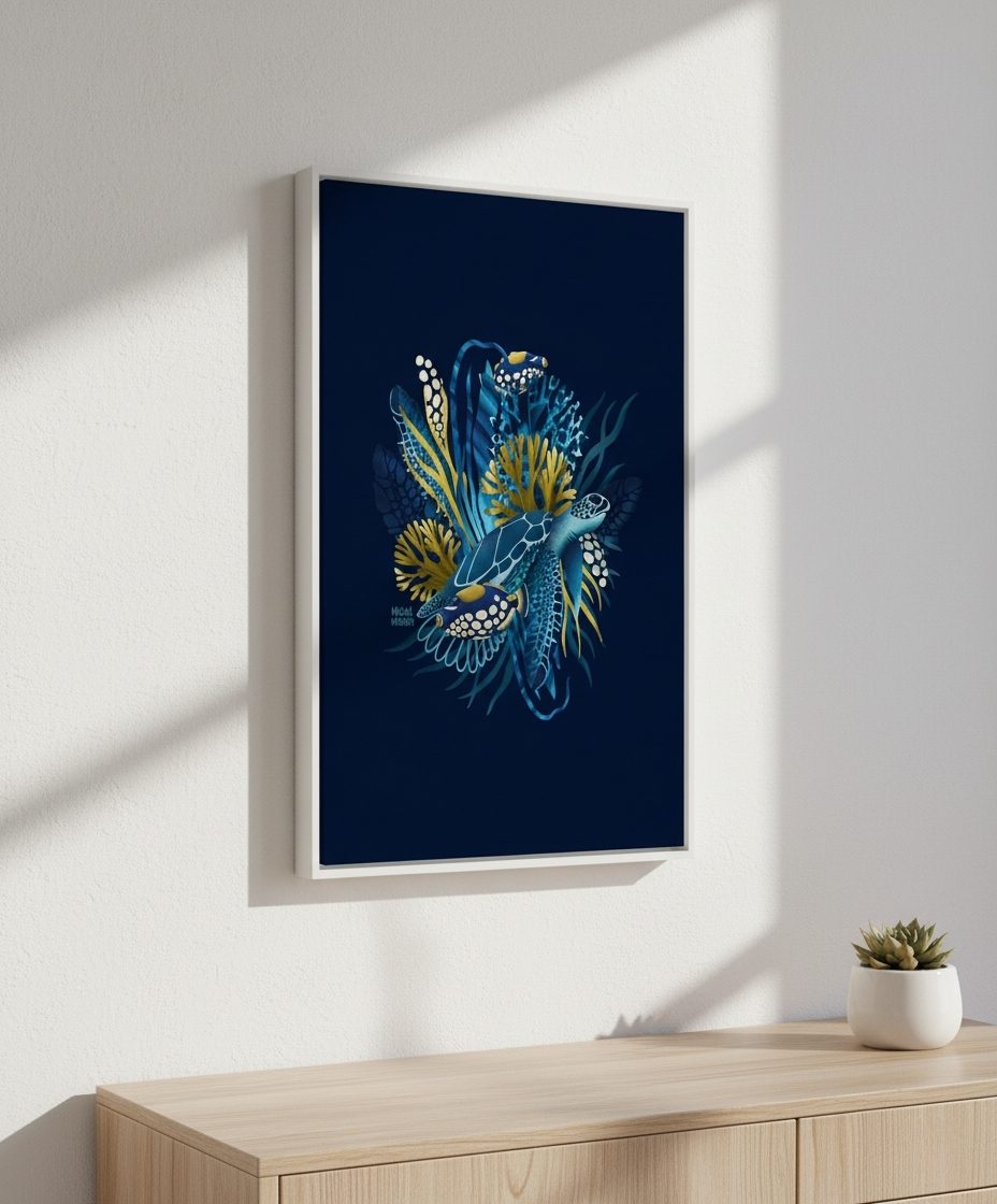 Produzida em tela canvas premium, “Oceânica 1” utiliza impressão com tinta látex de longa durabilidade, em tela canvas premium 100% algodão, moldura em madeira, garantindo brilho, textura e fidelidade às cores originais.
