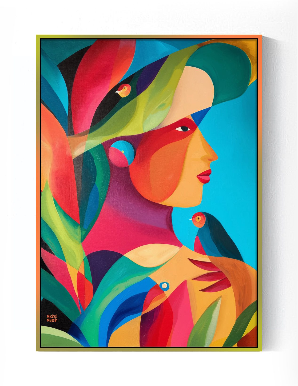 Com traços finos e uma explosão de cores em tonalidades, Michel cria uma composição rica e dinâmica, onde cada elemento conta uma história.
