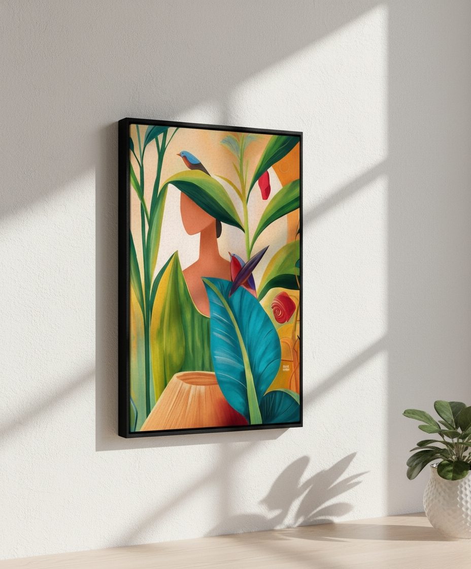 Produzida em tela canvas premium, “Tarsilla” utiliza impressão com tinta látex de longa durabilidade, em tela canvas premium 100% algodão, moldura em madeira, garantindo alta definição, resistência e acabamento elegante.